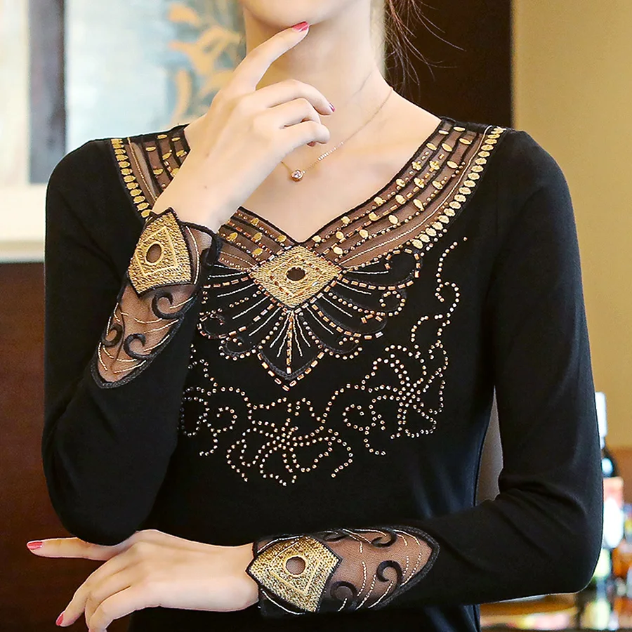 Special Offer Herfst Mode Borduren Hot Boren Lange Mouw Vrouwen Blouse Shirt Casual Plus Size Elegante Blouses Tops Femme Blusas Discount 20% Today!