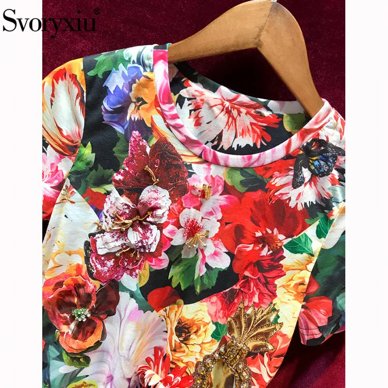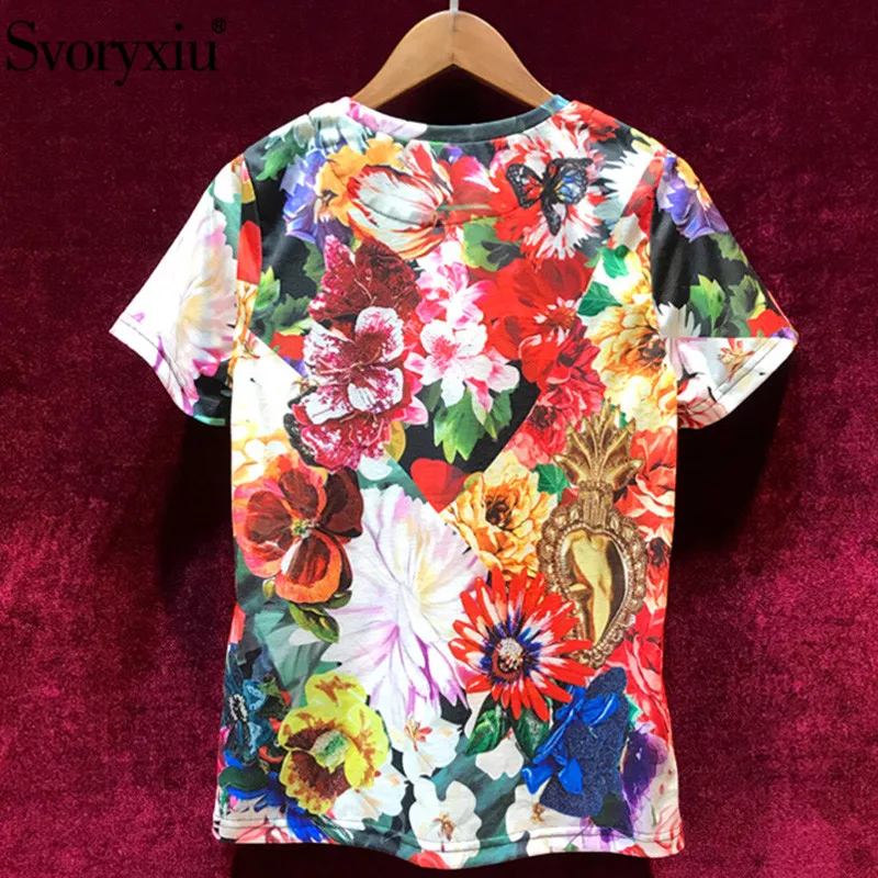 Special Offer Svoryxiu vrouwen Zomer Bloem Print Katoen Korte Mouwen T shirts Manual Diamond Casual Plus Size Runway Tops Tees Vrouwelijke Discount 45% Today!