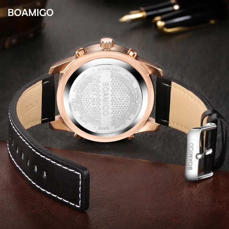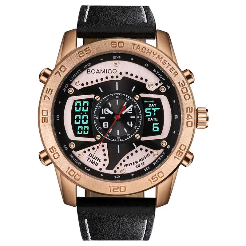 Special Offer Mannen Sport Horloges BOAMIGO Top luxe Merk Man Quartz Horloges LED Digital Leather horloges Relogio Masculino esportivo Discount 80% Today!