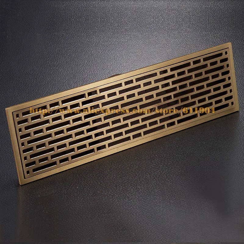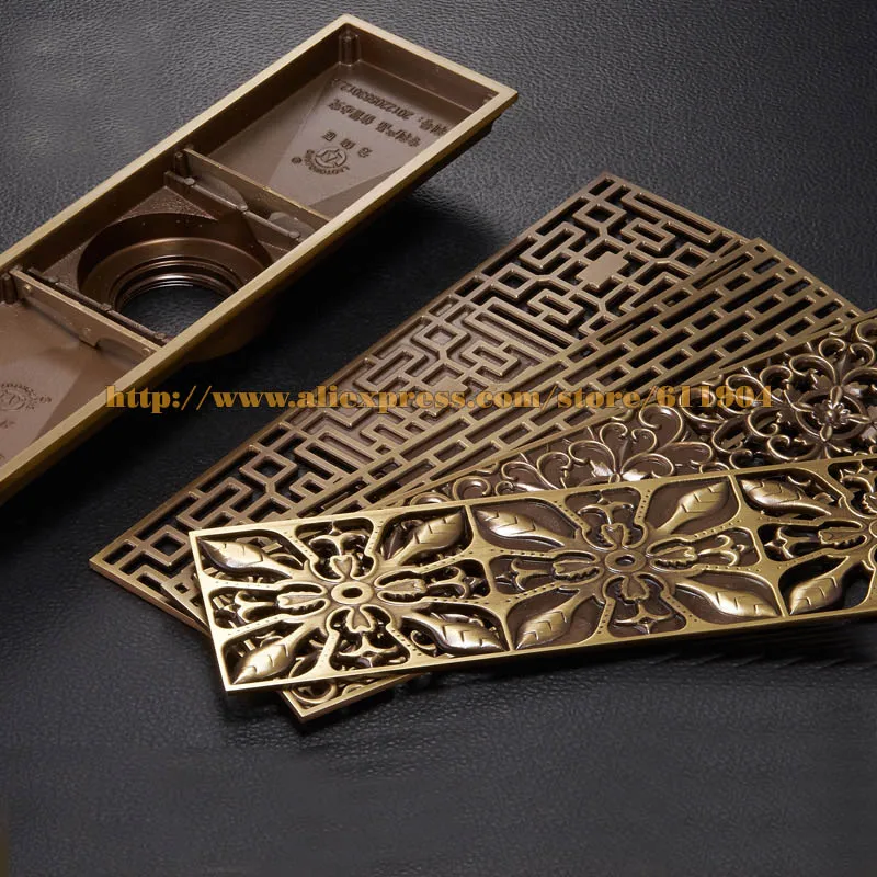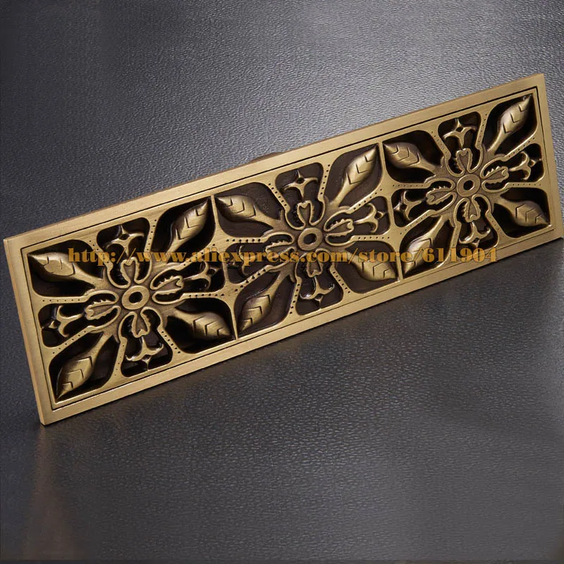 Special Offer Gratis Verzending Antiek Messing 8x28 cm Badkamer Lineaire Douche Afvoerputje Draad Zeef Afval Afdruiprek Bloem Gesneden FD015 Discount 20% Today!