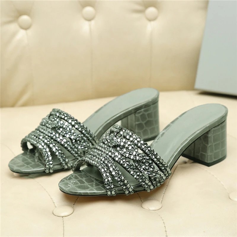 Special Offer 2020 Strass Slippers Vrouwen Crystal Diamond Plein Hak Schoenen Vrouw Sexy Steen Graan Gladiator Muilezels Voor Vrouwen Plus Big Size Discount 40% Today!