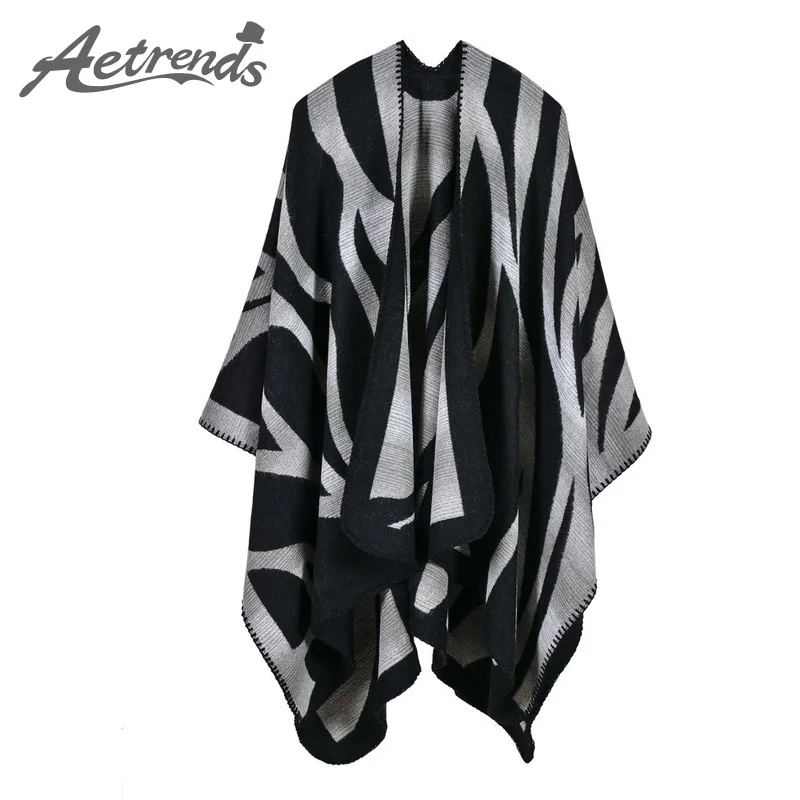 Special Offer [AETRENDS] Winter Sjaals Kasjmier Voelen Sjaal Vrouwen Poncho Cape Fashion Gestreepte Ontwerp Z 3981 Discount 40% Today!