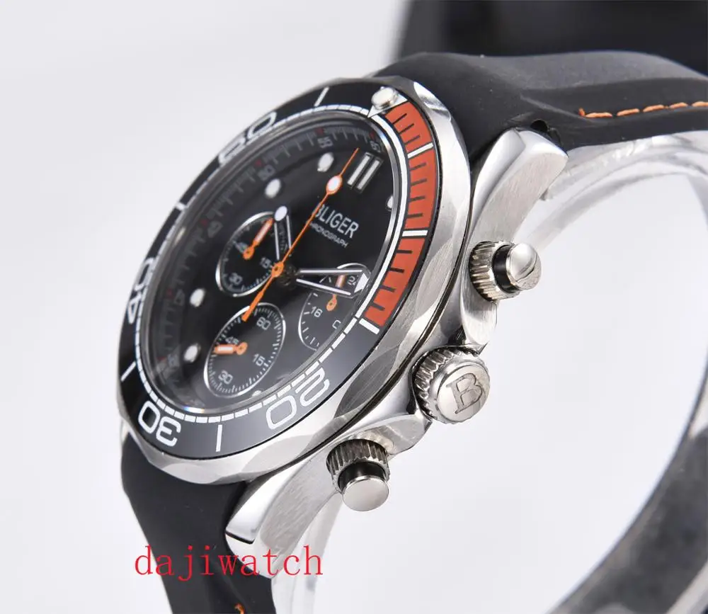 Special Offer Bliger Nieuwe 41 Mm Zwarte Wijzerplaat Zwart Oranje Keramische Bezel Case Rubber Strap Saffierglas Chronograaf Uurwerk Quartz Horloge Mannen S W Discount 50% Today!