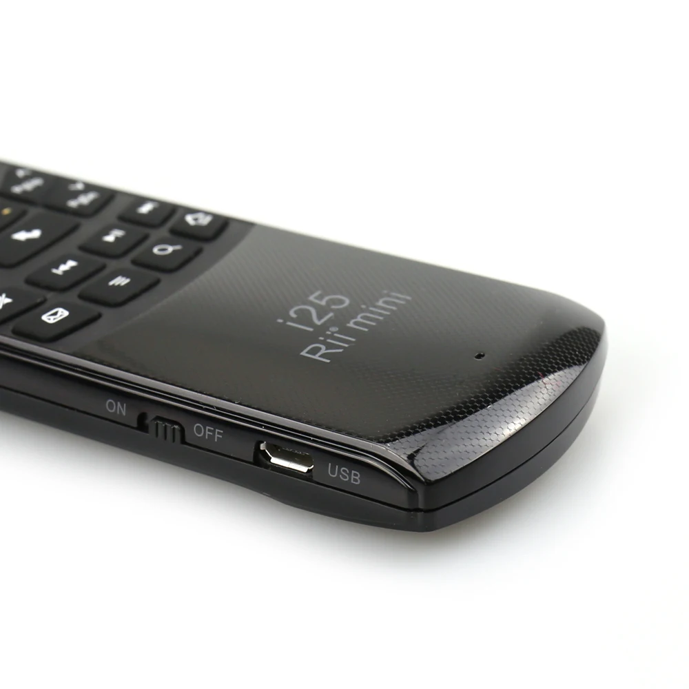 Special Offer Rii i25 2.4G Draadloze Russisch Engels Toetsenbord Fly Air Mouse IR Extender Leren Afstandsbediening Voor Android Smart TV IPTV Discount 20% Today!