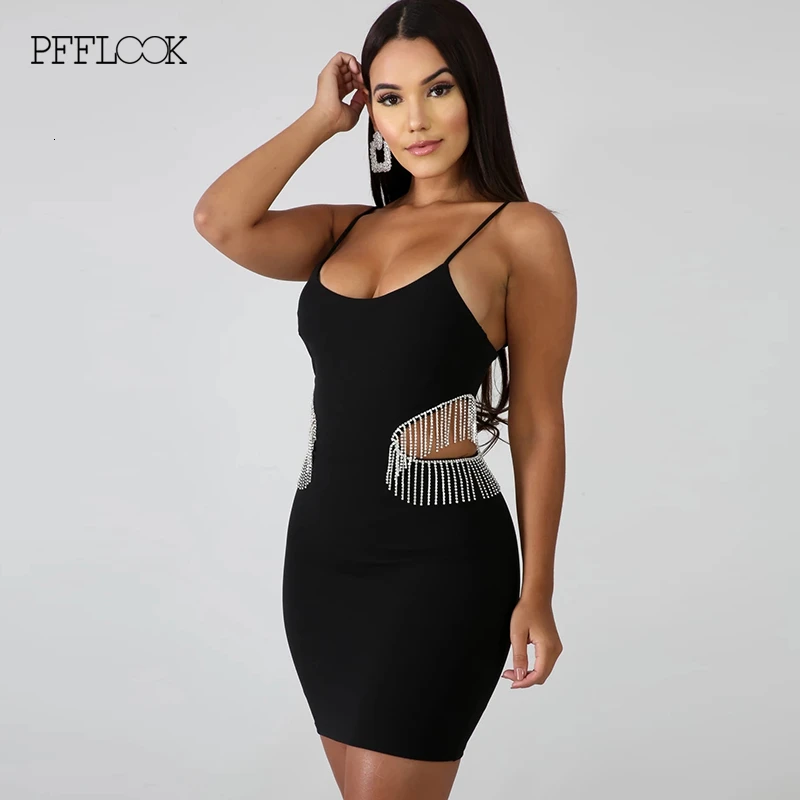 Special Offer Pfflook 2019 Zomer Kwastje Diamond Party Jurk Vrouwen Lace Up Off Shoulder Mouwloze Bodycon Sexy Jurk Hollow Out Club Vestidos Discount 41% Today!