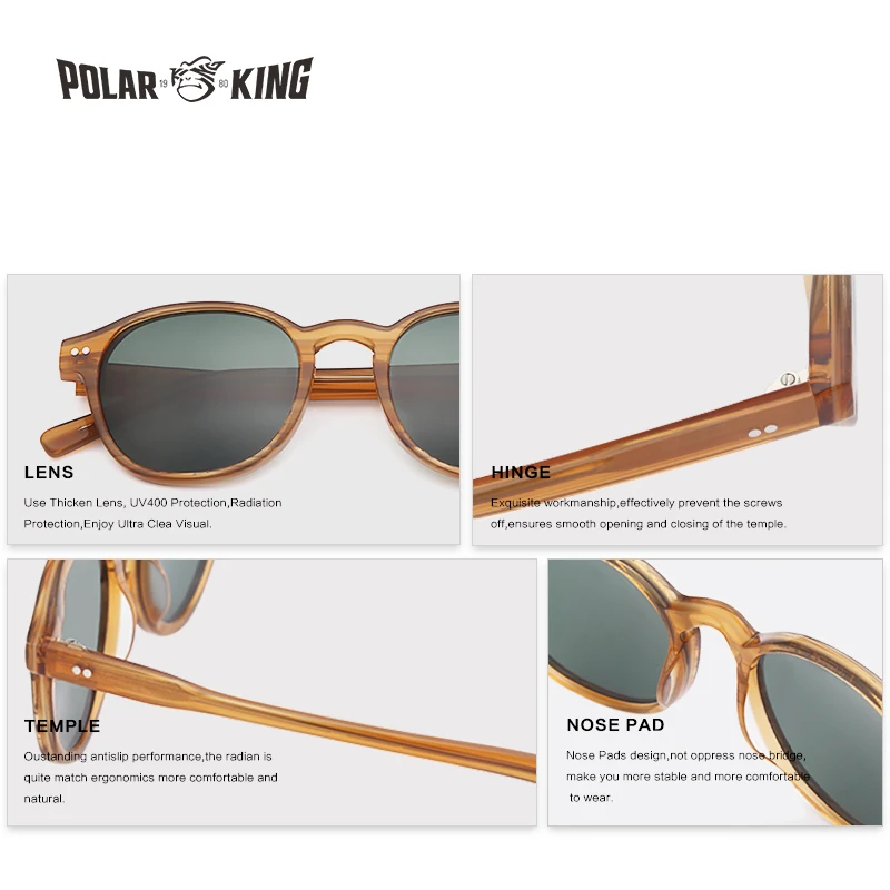Special Offer POLARKING Merk Vintage Designer Gepolariseerde Zonnebril Voor Mannen Reizen Unisex Acetaat Ronde Zonnebril Rijden Eyewear Oculos Discount 43% Today!