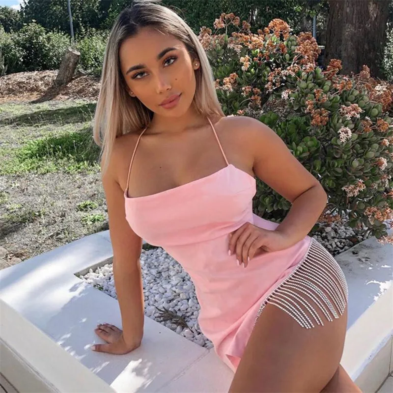 Special Offer BOOFEENAA Sexy Night Club Party Jurken Hoge Kwaliteit Diamant Kwastje Onregelmatige Backless Mini Bodycon Vrouwen Jurk C92 AF04 Discount 48% Today!