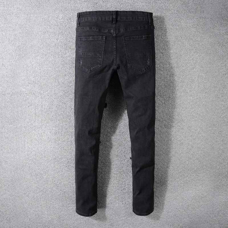 Special Offer High Street Fashion Jeans Zwart Vernietigd Hip Hop Jeans Mannen Gebroken Punk Broek Patch Skinny Ripped Jeans voor Mannen Discount 52% Today!