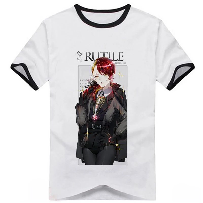 Special Offer Anime Land van de Glanzende tshirt Phosphophyllite Cinnaber Diamant Jade Rutiel Unisex Casual Korte Mouw T shirt afdrukken Tee Discount 0% Today!