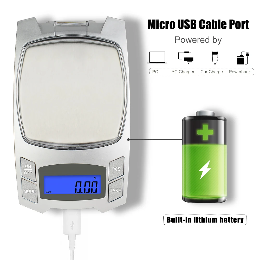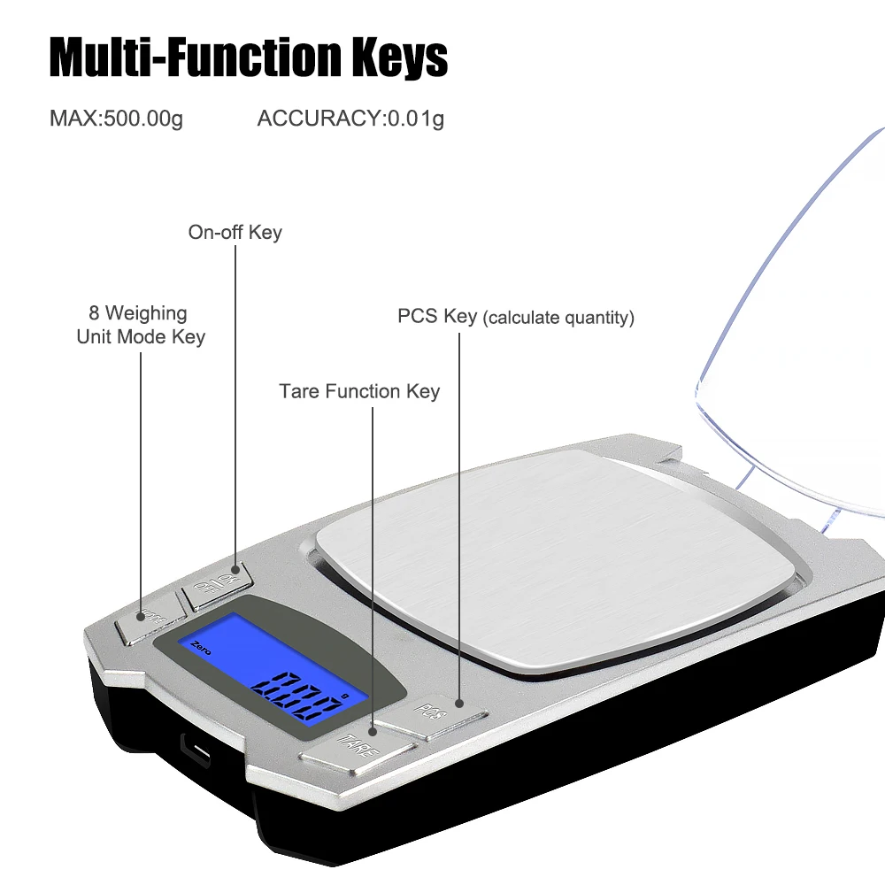 Special Offer NEWACALOX 500g x 0.01g Elektronische Sieraden Schaal USB Opladen Digitale LCD Display Lab Geneeskunde Precisie Draagbare Pocket Schaal Discount 51% Today!