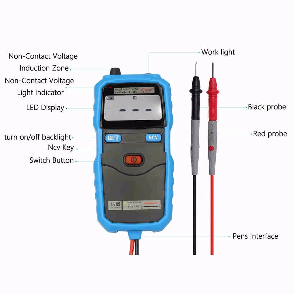 Special Offer BSIDE ADM06 Auto Functie Mini Pocket Digitale Multimeter DC AC spanning NCV Continuïteit Test Met backlight en werk licht Discount 6% Today!