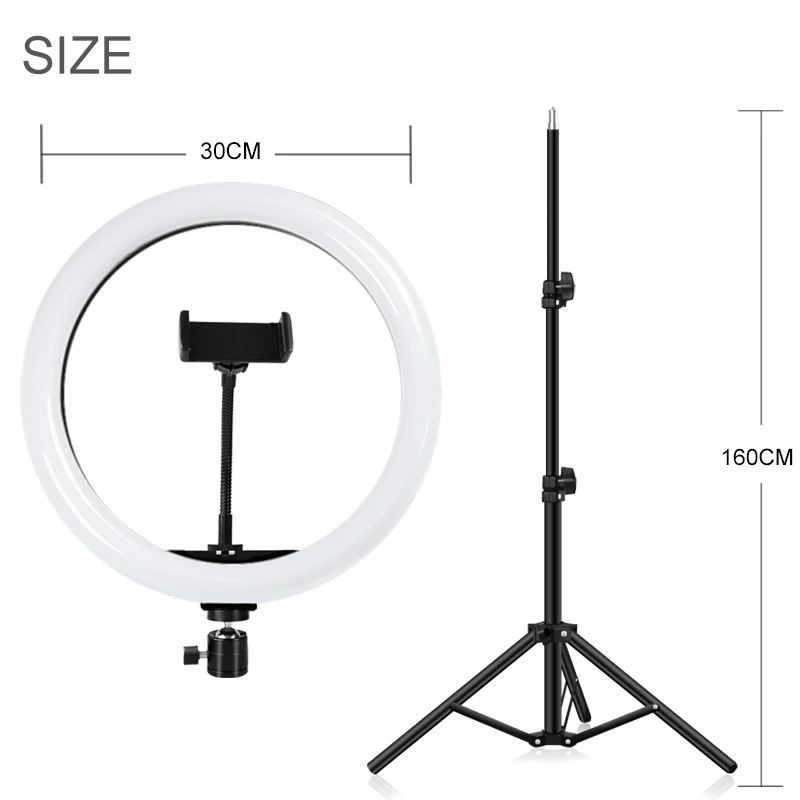 Special Offer 12 \"Dimbare Fotografie Verlichting Led Selfie Ring Licht 30 Cm Ring Lamp Met 160 Cm Statief Voor Youtube Make Up video Live Studio Discount 40% Today!