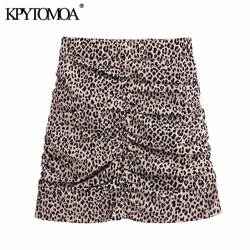 Special Offer Vintage Sexy Luipaard Print Gedrapeerde Detail Mini Rok Vrouwen 2020 Mode Hoge Taille Side Rits Vrouwelijke Rokken Chic Faldas Mujer Discount 41% Today!